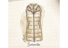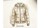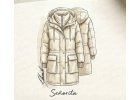 Je to prošívaná (puffer) bunda/kabát delšího střihu, sahající přibližně do půlky stehen. • Prošívání: Prošívání je provedeno ve šikmých, vlnitých nebo klikatých pruzích, což...
